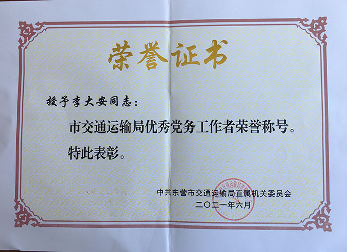 • 李大安榮獲“市交通運輸局優秀黨務工作者”